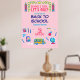 "School’s cool let’s rule" motivation quotes, back to school, 2nd Grade / Second grade, WELCOME / GRADUATION, BACK TO SCHOOL / I LOVE SCHOOL GRAPHIC DESIGN / Kids Party Decoration, Gifts, Colourful, Cartoon. Happy first day of School! Teacher Day, Gifts Graduation for boys and girls, Announcements Graduation, Student Life, Captions Graduation, Card, Teacher Messages, Graduation Ceremony, First Grade, Welcome, Graduation Decorations, Graduation Quotes. Modern Design with School Supplies Retro Hand Drawn icons, pencil, pen, brush, crown, schoolbag apple, books, notebook, Globe, school bus and more, on pink cute background - for two sides (front and back), with Smiley icon and text template. Personalise them by adding Date, School Name, Family name or wishes text.