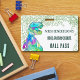 Delight young school children with this fun dinosaur hall pass with personalised class teachers name and Roarsome hall pass Jurassic jungle T Rex. Prehistoric dino colourful watercolor Original artwork by artist Catherine Sweetman