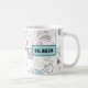 Personalise this teacher mug with the teacher name (or anyone's name). You can also change the colour of the frame design from the aqua or teal blue colour it is right now. Great for teacher appreciation. Imagine a charming, simple sketched pattern featuring a delightful classroom and back-to-school motif. This pattern is the epitome of nostalgia, perfect for teachers, kids gearing up for the school year, college students, and anyone who appreciates the classic charm of school supplies. With every glance, it evokes memories of backpacks filled with books, sharpened pencils, and the endless possibilities of the classroom. This back to school pattern features books, clocks, calculators, notebooks, rulers, apples, glasses, protractors, stars and more. Mostly black and white with pops of colour. Cute Personalised Name Teal Blue School Teacher Coffee Mug