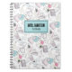 Personalise this teacher notebook with the teacher name (or student name) and the grade level or subject. You can also change the colour of the frame design from the aqua or teal blue colour it is right now. Great for teacher appreciation. Imagine a charming, simple sketched pattern featuring a delightful classroom and back-to-school motif. This pattern is the epitome of nostalgia, perfect for teachers, kids gearing up for the school year, college students, and anyone who appreciates the classic charm of school supplies. With every glance, it evokes memories of backpacks filled with books, sharpened pencils, and the endless possibilities of the classroom. This back to school pattern features books, clocks, calculators, notebooks, rulers, apples, glasses, protractors, stars and more. Mostly black and white with pops of colour. Cute Personalised Name Colourful School Teacher notebook.