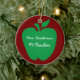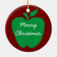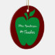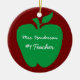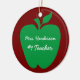 Teacher's Christmas gift ceramic ornament, done in red with a big green apple. White text, on both sides is ready to personalise to read what you want. Excellent gift idea for a teacher this Christmas.