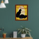 This is a French Art Nouveau inspired poster depicting Schrodinger's Cat. In English it says: Schrodinger's Cat, it's alive... its dead.