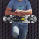 Hit the concrete jungle with unparalleled, high-tech style using this incredible sci-fi skateboard deck. The horizontal format of the board serves as the absolute perfect canvas for this epic comic book illustration. As you ride, the highly detailed white-armored cyborg, complete with its glowing yellow core and piercing blue eyes, stretches across the deck against a backdrop of a ruined industrial city, creating a raw, aggressive visual statement that is guaranteed to turn heads at the skatepark.