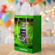 I love cute, retro faces on vintage, childhood metal toy wind-up robots. Here’s one of my favourites, set against a green bubble galaxy sky and bright green glitter background. You can be sure your gift will stand out whenever you use this fun, colourful, personalised name medium size gift bag. Coordinating and matching tissue paper is also available. Turns a great present into something even better!