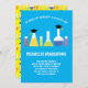 Celebrate the science graduate in your life with this cute beaker theme graduation invitation! The beakers even have fun graduation hats! Great for a science theme graduation party for someone in chemistry!