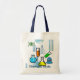 Colourful cartoon artwork canvas tote bag, has chemistry tubes and little mosters with customisable text. Personalise the text today for the sceince lover in your life. Makes a great gift for boys or girls.
