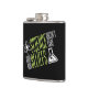 Well made flask, a little better than I had expected. Flask came in clear plastic box which gave it a nice presentation when I took it out of the zazzle packaging. Image is not printed on flask but on sticker. Don't know how this will hold up I haven't used it yet. This would make a Great gift! I plan to purchase more for friends! Cheers. I thought a little brighter than computer. Very crisp, writing wasn't