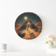 Wall Clock, 25.4 cm Round Black Wooden Frame
