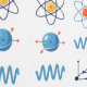 Science-themed wall art featuring 9 cartoon-style icons: atomic models, electromagnetic waves, and laboratory flasks. Perfect for study rooms, classrooms, and science enthusiasts. Clean blue and grey palette fits any modern interior.