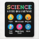 Playful science artwork made for curious kids and young students. Cute symbols like flask, microscope, magnet, test tube, magnifying glass and atom help children explore science in a fun and easy way. Ideal for school, learning and discovery.