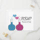 So fun and nerdy is this Science of Love Wedding RSVP Postcard which features a pair of beakers, one in blue and the other in fuchsia, with cute heart bubbles. This quirky and unique design is perfect for that nerdy couple wanting something memorable that matches their quirky personalities! Easy to customise, simply add the details of your wedding day in the spaces provided. Click on the "Customise It" button to find additional personalisation options.