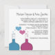 So fun and nerdy is this Science of Love Wedding Invitation which features a pair of beakers, one in blue and the other in fuchsia, with cute heart bubbles. This quirky and unique design is perfect for that nerdy couple wanting something memorable that matches their quirky personalities! Easy to customise, simply add the details of your wedding day in the spaces provided. Click on the "Customise It" button to find additional personalisation options.