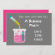 An invitation card suitable for a Science party featuring pink liquid chemistry theme. Fun Geek party vibe. Great for a kids science experiments party.