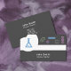 A business card for a science teacher or tutor (such as physics, biology, chemistry, math), with full contact information on the back. It comes with science illustrations: DNA, atomic nucleus, the formula E=MC2, a cell, a ruler and a chemist's beaker.