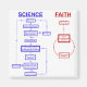 A diagram illustrating the different thought processes behind science and faith. When new evidence is discovered, science tests it against existing theories and modifies the theory to better understand the Universe. Religion ignores contradicting evidence in an infinite loop of ignorance.