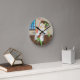 The clock did not take as long to arrive as I thought it might and was extremely well packaged. I didn't do the measurements so I didn't realize it is a little smaller than the average clock but that does not matter (just make sure you check if that's important to you).It is really nifty! It seems very solid and well made not flimsy at all. It has been going well and has kept good time in its few weeks on my wall. Nice product. Gets noticed too! Nicer in real life than the picture but true to the picture