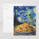 Scifi Blue Alien Eating Noodles Veggies Van Gogh Postcard