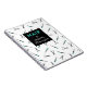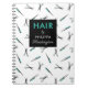 Chic notebook in black, white, and turquoise with a pattern of scissors and combs.