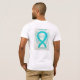 Scleroderma awareness uses a teal ribbon for its cause awareness. The shirt art features a teal awareness ribbon angel painting. The awareness angel t-shirt message notes "Scleroderma Awareness". There is a large image on the back of the shirt and a smaller picture on the front of the shirt. The teal awareness angel ribbon art apparel can be customised with personalised messages to make great cause event clothing for fundraiser shirts, group team walk shirts, awareness t-shirt gifts, or other special cause events occasions for merchandise to help increase this cause's awareness in public for society's help in creating help & cause change.
