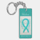 Awareness ribbon angel keychain features the art of a teal awareness angel painting. The art side notes "Scleroderma Awareness" and the reverse side states "I Hope & Support Awareness for a Scleroderma Cure!" Add your own custom words for personalised angel art cause awareness custom charm key chains! You can also remove the text for an art only angel pendant key chain. The teal awareness angel ribbon painting art keychains can be customised with personalised messages to make great awareness cause art key chains for fundraisers, awareness gifts, or other special events. Give this angel art keychain charm as an awareness ribbon gift for any occasion.