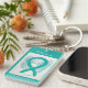 Awareness ribbon angel keychain features the art of a teal awareness angel painting. The art side notes "Scleroderma Awareness" and the reverse side states "I Hope & Support Awareness for a Scleroderma Cure!" Add your own custom words for personalised angel art cause awareness custom charm key chains! You can also remove the text for an art only angel pendant key chain. The teal awareness angel ribbon painting art keychains can be customised with personalised messages to make great awareness cause art key chains for fundraisers, awareness gifts, or other special events. Give this angel art keychain charm as an awareness ribbon gift for any occasion.