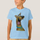 The t-shirt feels and looks great quality, a good thick cotton. It will be a little big for my son, but that means he will be able to wear it and not out grow it too soon. The print was as described on the order when personalised. True size, shape and colour T-shirt- thanks.