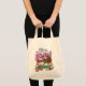 The printing came out very well, better than I had anticipated. The natural color fabric is sturdy with strong seams and comfortable handles. This tote fits easily over my shoulder. As it is filled, the bottom flattens out--very cool! I would buy this product again. This grocery tote holds a lot of groceries! The image quality was very good. The colors were a little darker than I had expected. The darkness may have been due to printing on a natural color fabric rather than on white. The cat design is attractively centered on the tote. The spirit of the design is very lively, just as it appears on the Zazzle website.
