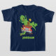 The t-shirt feels and looks great quality, a good thick cotton. It will be a little big for my son, but that means he will be able to wear it and not out grow it too soon. The print was as described on the order when personalised. True size, shape and colour T-shirt- thanks.