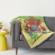 A beautiful small blanket that is perfect for covering your legs while curled up in front of the fire, or for a decorative touch on the sofa. We also think it looks brilliant as a Christmas table centerpiece. We are delighted with it. The colors are absolutely perfect. Vibrant yet traditional. The pattern retains its lovely details despite the texture of the fabric. Very classy product that will not disappoint as a gift.