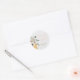 The sticker is made on wonderful paper and had no problem sticking to the bag that I purchased to put it on. I wanted to find a design that would be cute for the bride and groom and this one fit the bill as it has cute "bees" buzzing around and the wedding was taking place in a town called "Bee Cave". The packaging was great and protected the stickers. The website is easy to navigate and there are so many color choices. I had no problem finding a color that the bride was using on everything else selected. The design was adorable and there were many to choose from. You can make the figure as larger or smaller and you can place the photo and writting whereever you want to in the sticker. The printing is fabulous..better than expected.