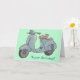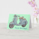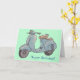 An original watercolor and ink painting of a scooter on a coloured background with Happy Birthday! written across the card.