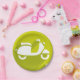A scooter motorbike icon on a green background. This design looks really effective on these Paper Plates