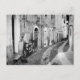 Photo postcard of a vintage scooter parked in front of a house in a cobblestone street in a city in Italy in stylish black and white.