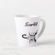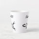 This awesome latte mug features a digital art image of a black scorpion with big claws and a large sting on the tail curved above the top of its body, with the word Scorpio in bold black text inside the body of the arachnid. A fun design for people celebrating a Birthday born between October 24 and November 21 under the star sign of Scorpio. There is custom text so you can include a name.