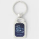 Keychain featuring the zodiac symbol for Scorpio in soft silver blue, overlaid with the stars of the constellation, against a starry sky background graded from deep midnight blue to black.