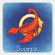 Colourful illustration features blue background with a red scorpion - the symbol of astrological zodiac sign Scorpio (Oct. 23-Nov. 21).