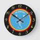 The clock did not take as long to arrive as I thought it might and was extremely well packaged. I didn't do the measurements so I didn't realize it is a little smaller than the average clock but that does not matter (just make sure you check if that's important to you).It is really nifty! It seems very solid and well made not flimsy at all. It has been going well and has kept good time in its few weeks on my wall. Nice product. Gets noticed too! Nicer in real life than the picture but true to the picture