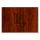 A Scorpio Zodiac Sign applique in a rich brown Mahogany wood grain style print background. A classy modern design for a great custom birthday gift idea.