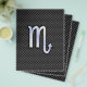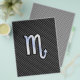 A silver chrome like Scorpio zodiac symbol on a charcoal black carbon fibre texture print decor. A modern urban racy design for a great custom birthday gift idea.