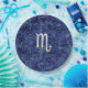 A silver chrome like Scorpio Zodiac Symbol on a navy blue design texture print background decor. A modern urban racy design for a great custom birthday gift idea.