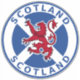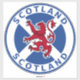 Round flag of Scotland with lion and text Scotland.