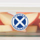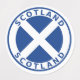 Round flag of Scotland with text Scotland.