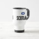 The Scottish saltire in patriotic blue and white with the name "SCOTLAND" written beneath in bold black lettering.