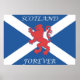 Scotland Forever Lion Rampant Flag with the St Andrews Cross in the background