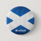 Pin back button features grunged Scotland Flag, also known as Saint Andrew's Cross and The Saltire.
