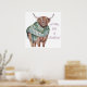 This cute poster features a beautiful illustration of a friendly, hairy ginger Highland cow, wearing a plaid tartan scarf. "A Wee Bit of Scotland" is in script text next to the funny animal art. Perfect for anyone with Scottish ancestry or anyone who loves Scotland.
