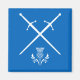 Two crossed claymore swords and a thistle symbol in the Scottish flag colors