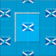 Scottish themed fabric featuring a part of the flag and a unicorn, the national animal of Scotland. Background colour is customisable.