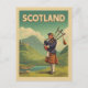 Embark on a journey to Scotland with this nostalgic travel poster! Featuring a vibrant illustration of a Highland bagpiper in traditional tartan attire against a backdrop of rolling hills and misty mountains, this design blends classic Scottish culture with bold retro aesthetics. Perfect for travelers, music enthusiasts, or anyone who dreams of exploring the Scottish Highlands, this high-quality print is ideal for framing, gifting, or adding a touch of Celtic charm to your space. it celebrates Scotland’s rich heritage inspired by mid-century travel promotions.