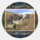 This design features a photograph of Castle Campbell, framed with a band of coordinating goldish tan. The colour repeats in the clan and castle name in a script font. The photo is banded by a popular dark family tartan in greens and blues.